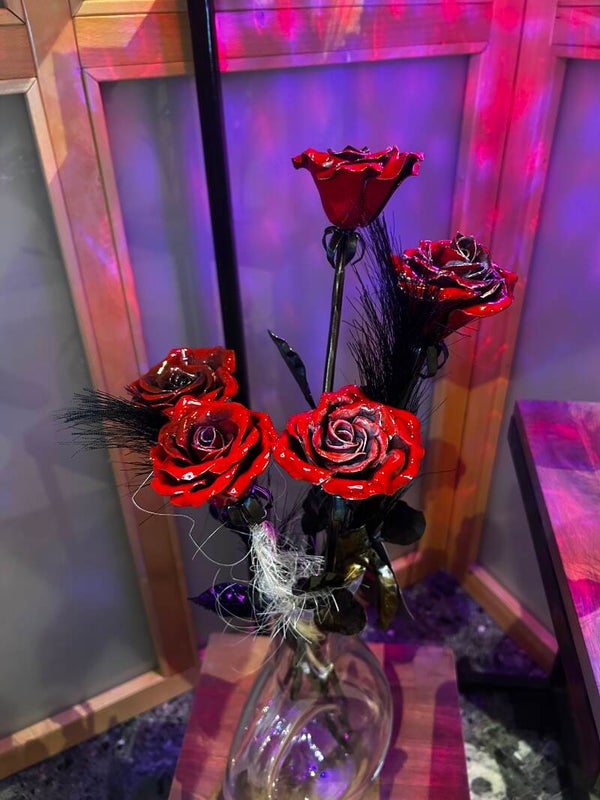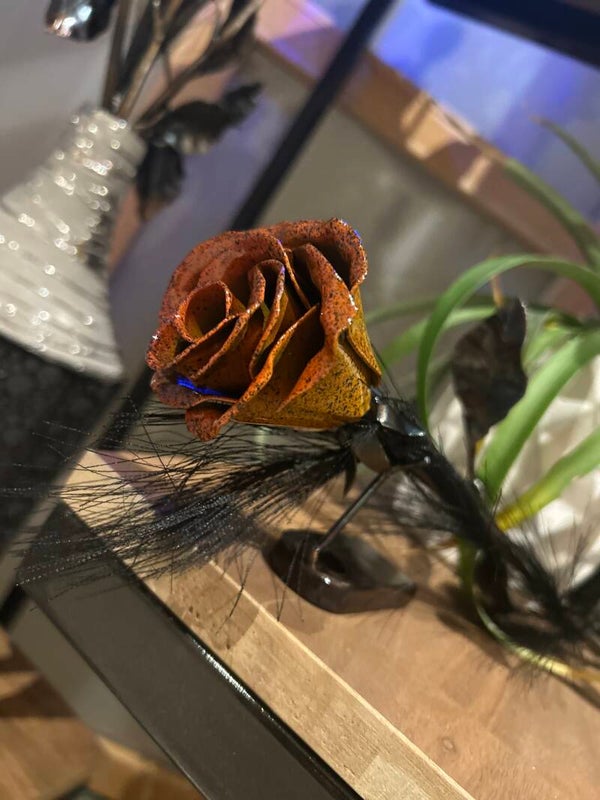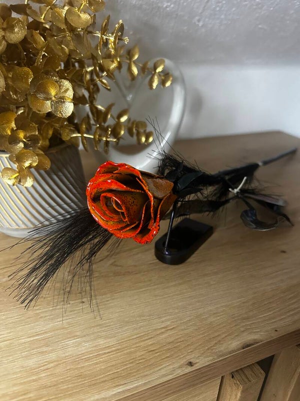 Metall-Rose (Tokio), 1 Rosen in der Wünschfarbe Lackiert. Rose ist ohne Fuß also als liegendes Deko-Variante oder für eine Vase gedacht.